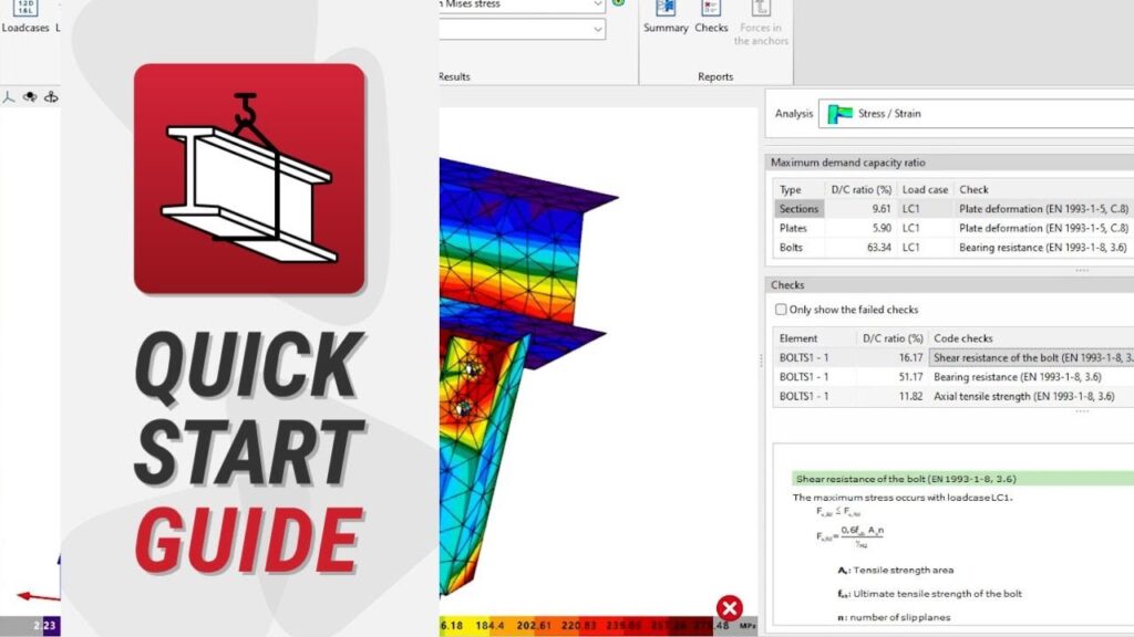 Com o StruBIM Steel pode calcular e verificar automaticamente e simultaneamente todas as ligações definidas no modelo ou pode optar por selecionar uma ou mais ligações específicas e efetuar o cálculo e a verificação.