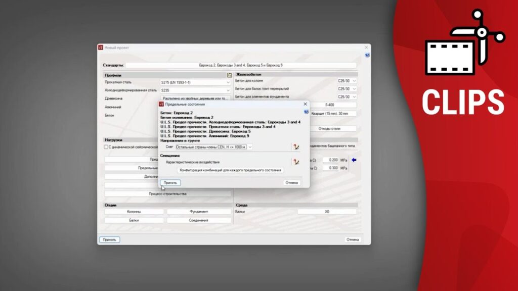 Меню: “Нелинейные комбинации” в программе CYPE 3D