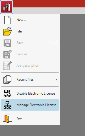 Alternatively, you can also click on the application logo at the top left of the program currently running and select "Manage Electronic License":