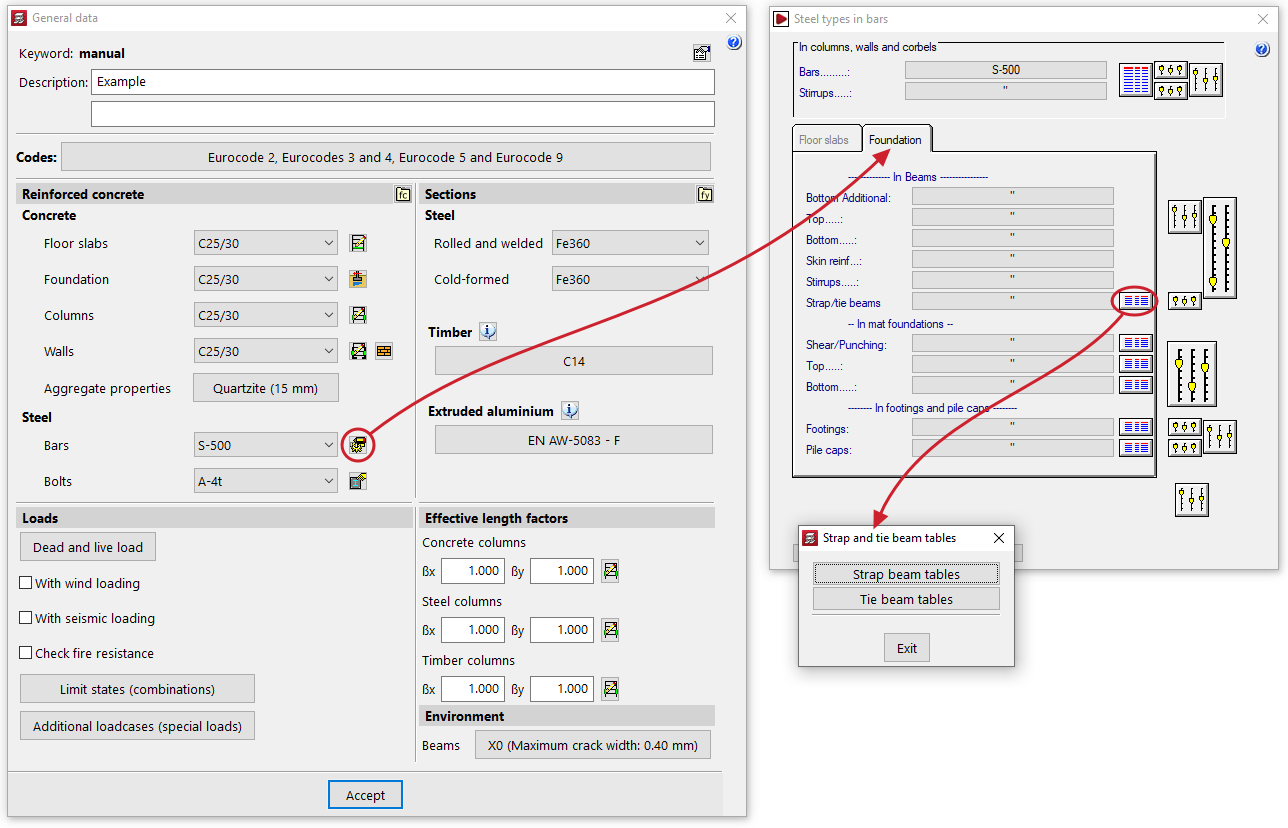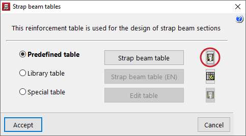 To customise these tables, go to "Project" > "General data", and click on "By position". Then select the "Foundations" tab to edit the reinforcement table "Strap/tie beams".