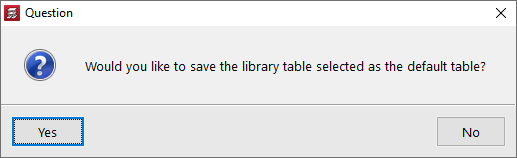 Once you have customised the beam table, you can validate the menus, and a window will appear with the following question: Would you like to save the library table selected as the default table?