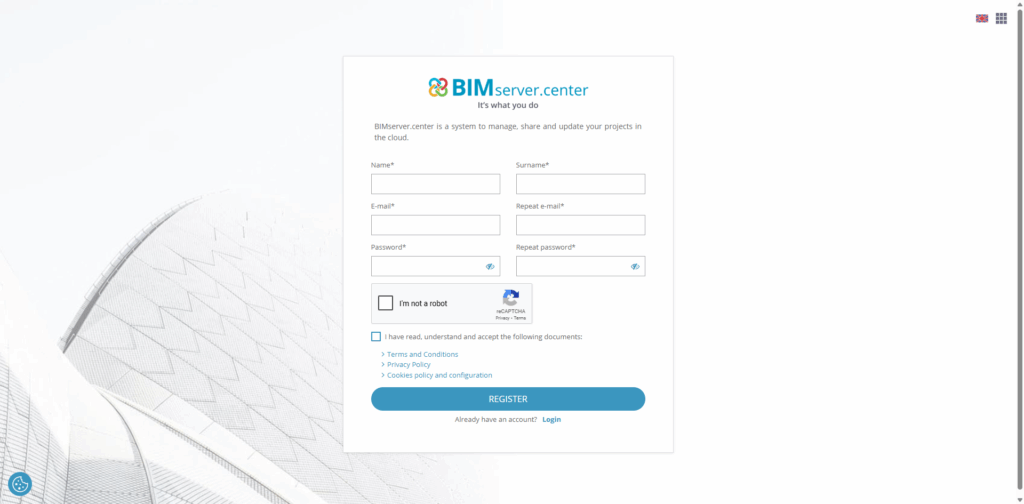 First of all, users must register on the BIMserver.center platform. To do so, proceed as described below:
