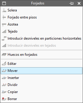 They can be changed by moving the edges or vertices of openings or floor slabs. This can be carried out using the option available under "Building elements" > "Floor slabs" > "Move":