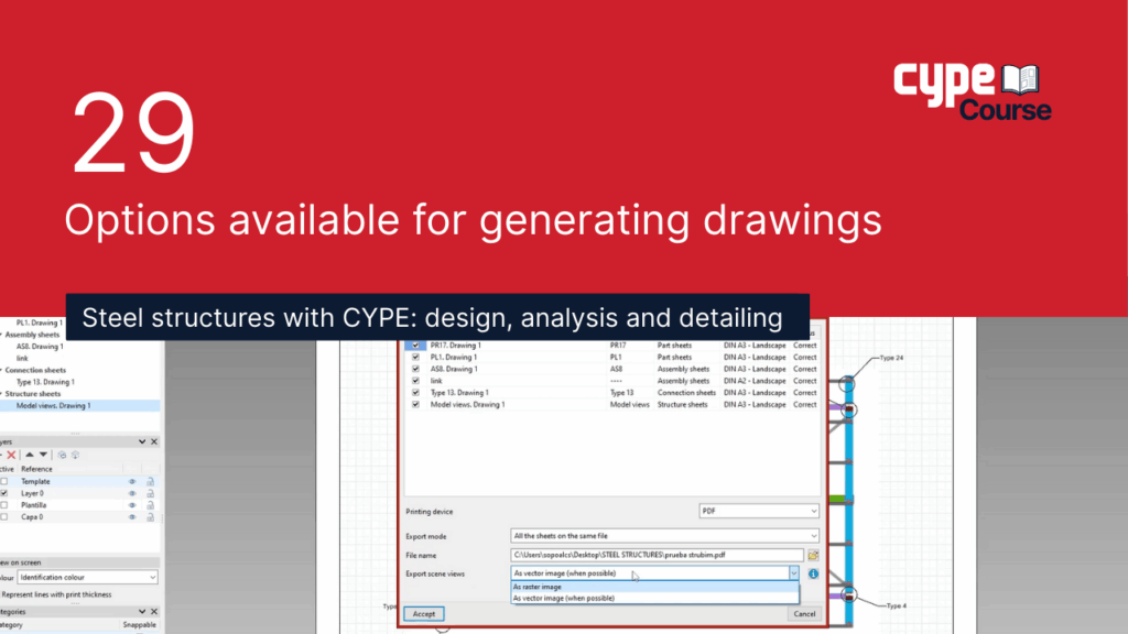 29 - Options available for generating drawings | CYPE Steel Structures