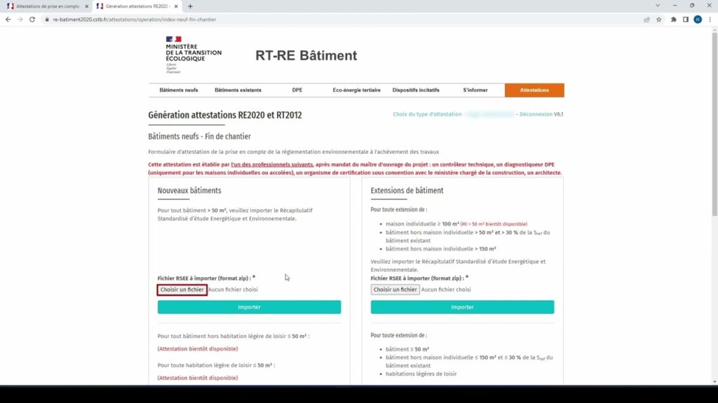 Champs « PCE conservé » dans les « Produits de construction et équipements »