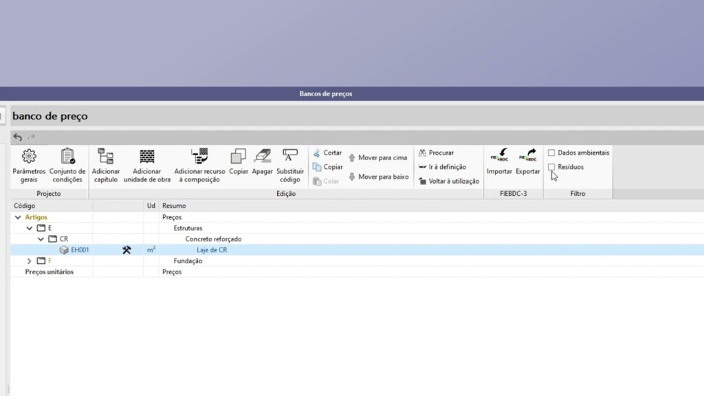 Open BIM Quantities: adicionar capítulos e unidades de obra em bancos de preços