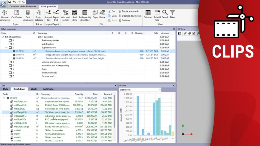 Open BIM Quantities : base de prix métrés et production d'estimatifs dans le même logiciel