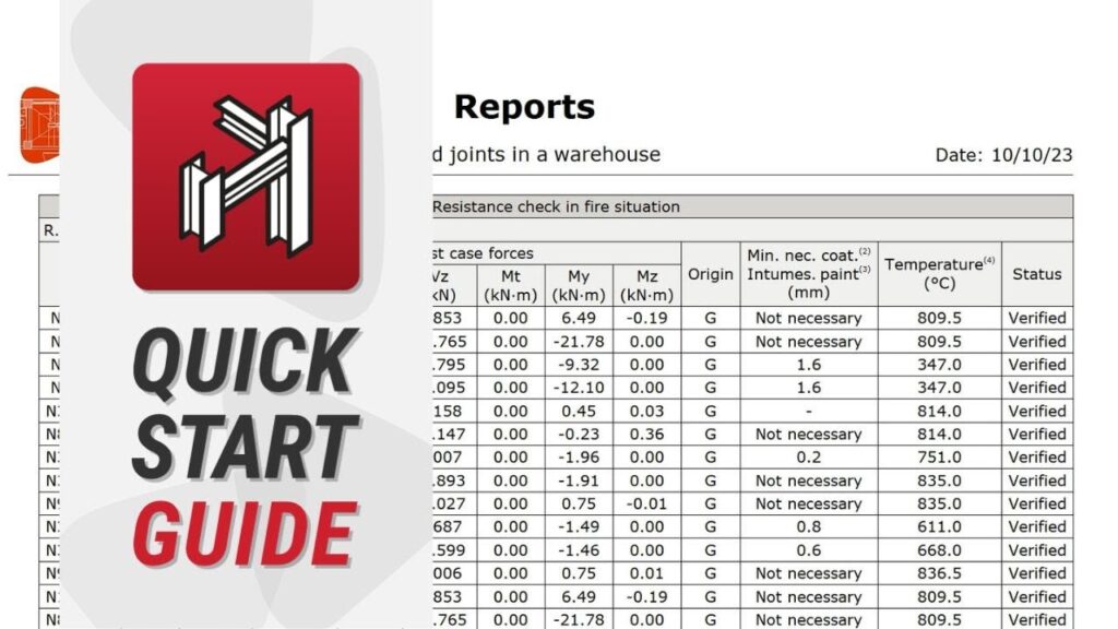 Com o CYPE 3D pode consultar os resultados da verificação da resistência ao fogo. Para isso, pode deslocar o cursor do rato sobre as barras da sua estrutura ou gerar listagens com os resultados detalhados das verificações, tanto de resistência à temperatura ambiente como de resistência ao fogo.