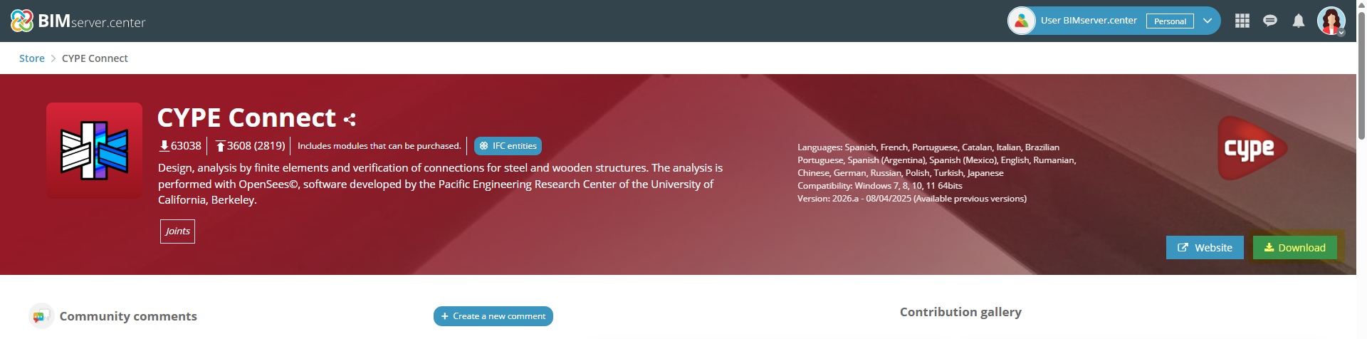 Después, se descarga e instala CYPE Connect desde BIMserver.center.