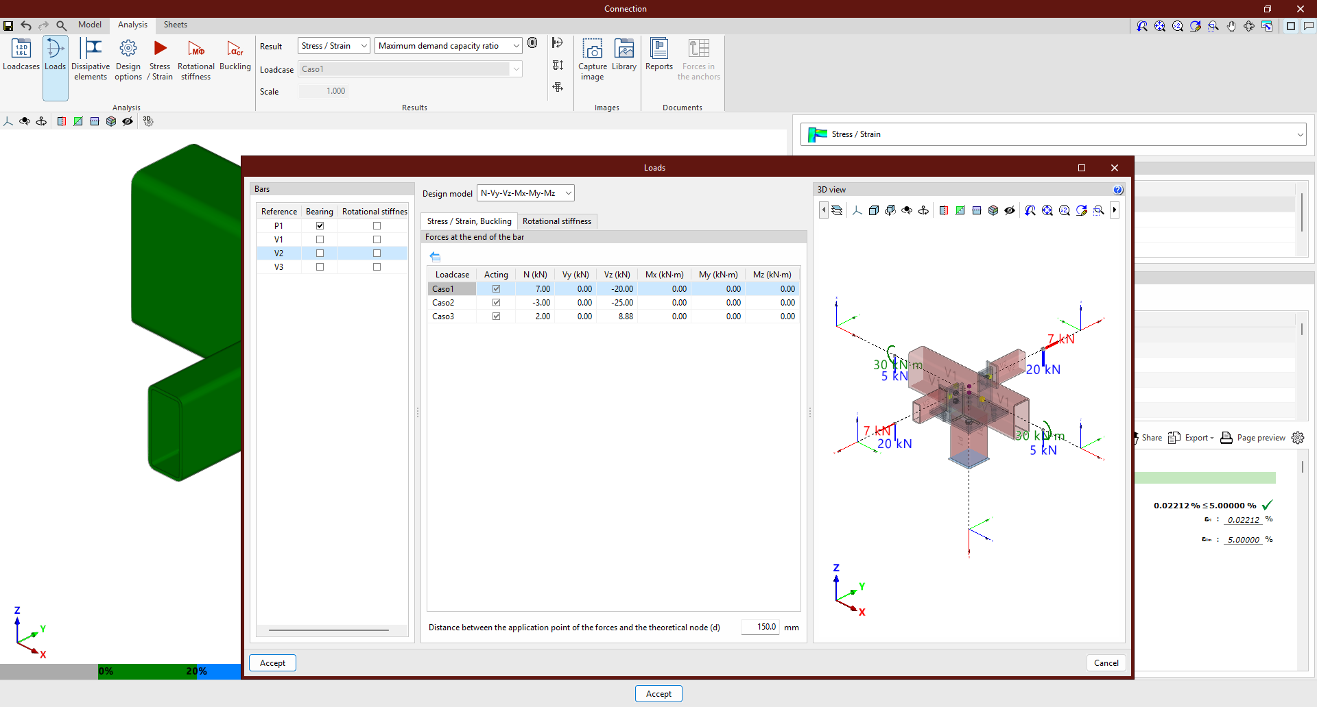 Desde la versión 2021.f, los programas de cálculo de estructuras CYPECAD y CYPE 3D son capaces de exportar la información de los esfuerzos calculados en los extremos de los elementos metálicos (vigas, pilares y barras de estructuras 3D integradas) para que sean utilizados en el cálculo de uniones por CYPE Connect y StruBIM Steel.
