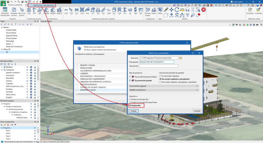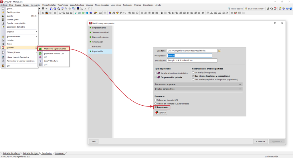 CYPECAD, CYPECAD MEP y CYPE Construction Works pueden generar un presupuesto que luego puede ser abierto en Arquímedes de varias formas: