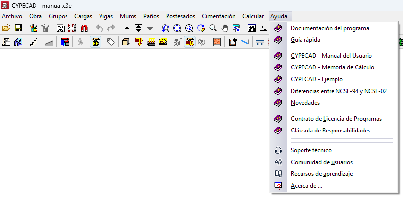 En programas Open BIM, el menú "Ayuda" se accede pulsando sobre el botón del extremo superior derecho de la interfaz general: