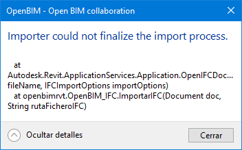 Tras realizar esta modificación, vuelva a vincular la aportación con el Plugin Open BIM – Revit. El proceso de importación debería completarse correctamente.