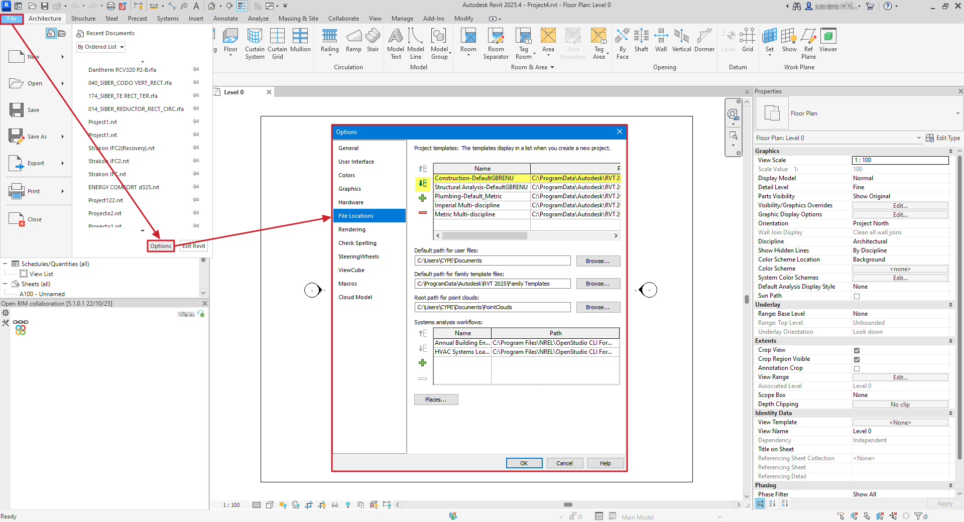 En concreto, el error se produce cuando la plantilla "Construction-DefaultGBRENU.rte", ubicada por defecto en: C:\ProgramData\Autodesk\RVT ####\Templates\English\, se encuentra situada en la primera posición de dicha lista.