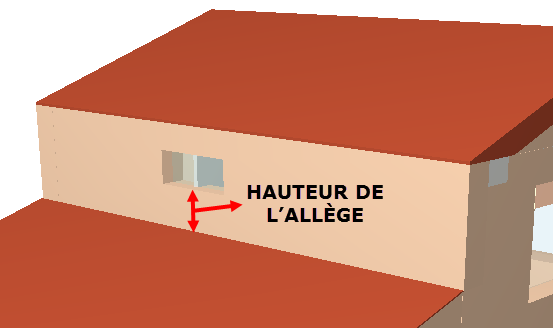 Remarque : La hauteur d’allège de la baie vitrée dans un mur de fermeture de dénivelé est prise à partir du bas du mur de fermeture de dénivelé (sur la fin de la toiture dans notre cas).