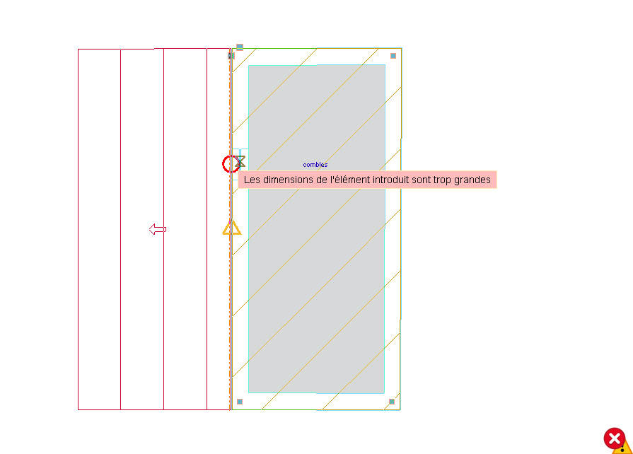 Vous avez introduit une fenêtre dans votre mur mais le logiciel vous affiche le message d’erreur suivant : « Les dimensions de l’élément introduit sont trop grandes ».