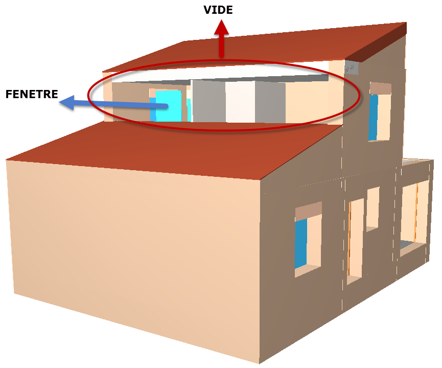 Remarque : La hauteur d’allège de la baie vitrée dans un mur de fermeture de dénivelé est prise à partir du bas du mur de fermeture de dénivelé (sur la fin de la toiture dans notre cas).