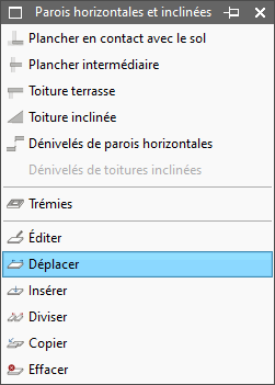 Vous pouvez la modifier en déplaçant les arêtes ou les sommets de la trémie ou du plancher. Pour ce faire, cliquez sur 'Éléments constructifs' > 'Parois horizontales et inclinées’ > ‘Déplacer’.