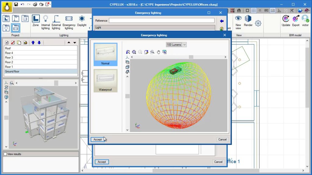 CYPELUX, logiciel de simulation d’éclairement et de vérification d’installation d’éclairage