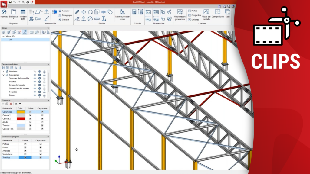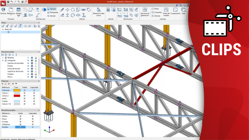 StruBIM Steel: Opciones para "Agrupar", "Desagrupar" y "Generar" uniones