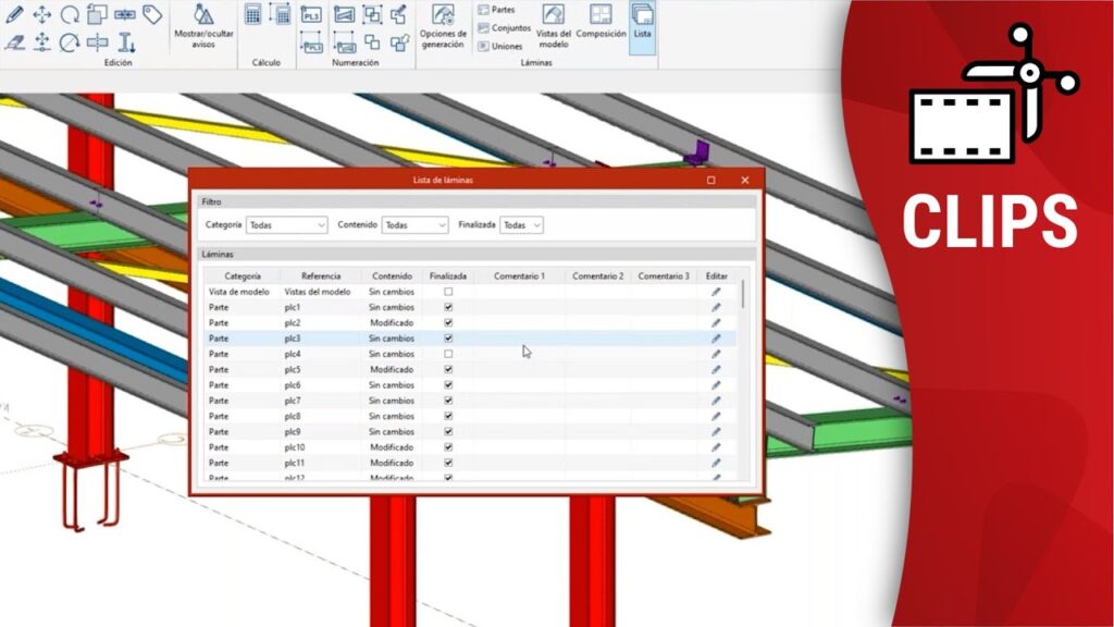 StruBIM Steel: Edición de láminas de "Conjuntos"
