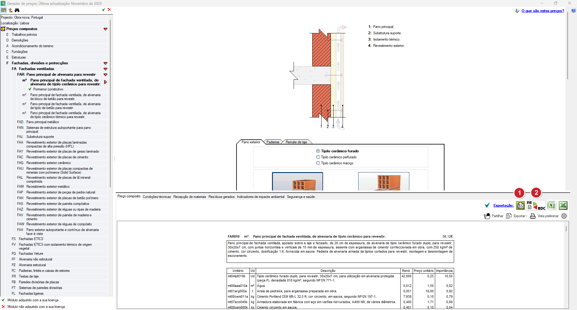 Assim, existem duas opções de trabalho. Por predefinição, ao aceder ao programa Gerador de Preços, a opção para exportar unidades de obra para programas de orçamentos diferentes do Arquímedes será através do ícone (2). Se clicar nesse ícone (2), ele mudará para um ícone do tipo (3). E vice-versa, se clicar novamente no ícone, ele volta ao estado inicial. Ou seja, cada vez que clica no ícone, o procedimento muda.