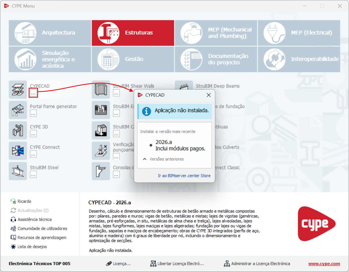 7. Instalar aplicações no CYPE Menu