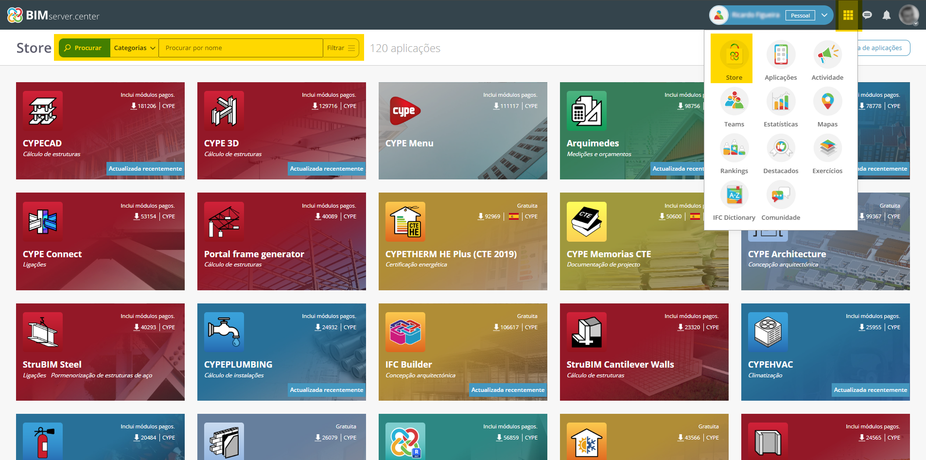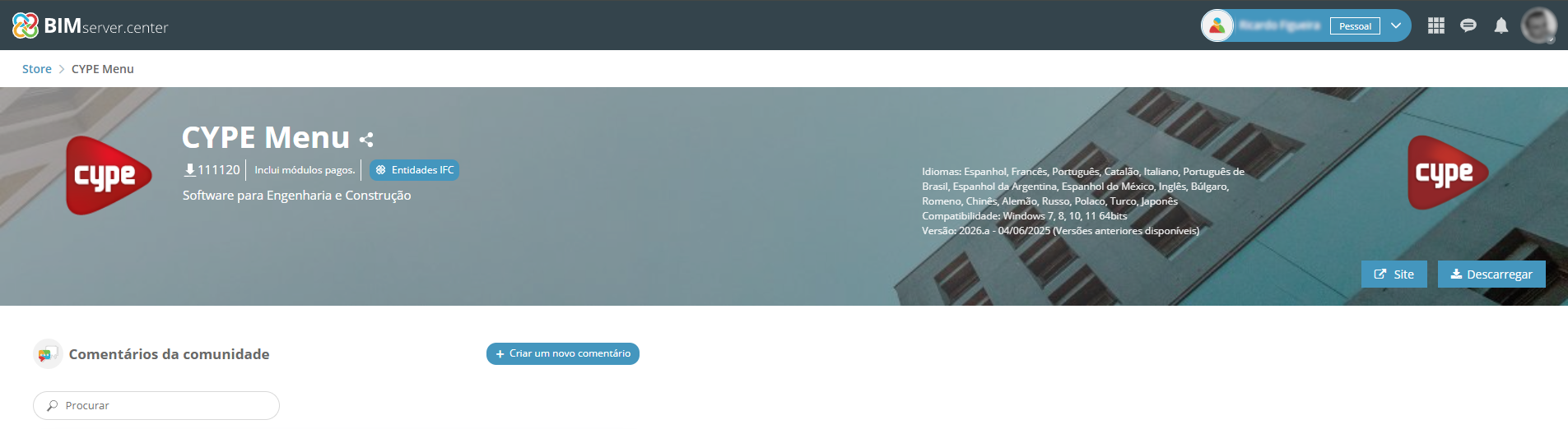 3. Descarregar o CYPE Menu a partir do BIMserver.center