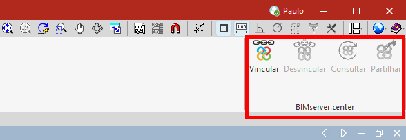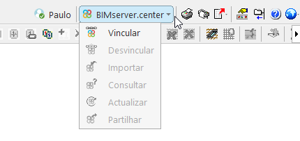 A partir do menu BIMserver.center, pode utilizar o botão “Vincular” para relacionar a obra com um projeto do BIMserver.center. No CYPECAD, este menu está situado na parte superior direita: