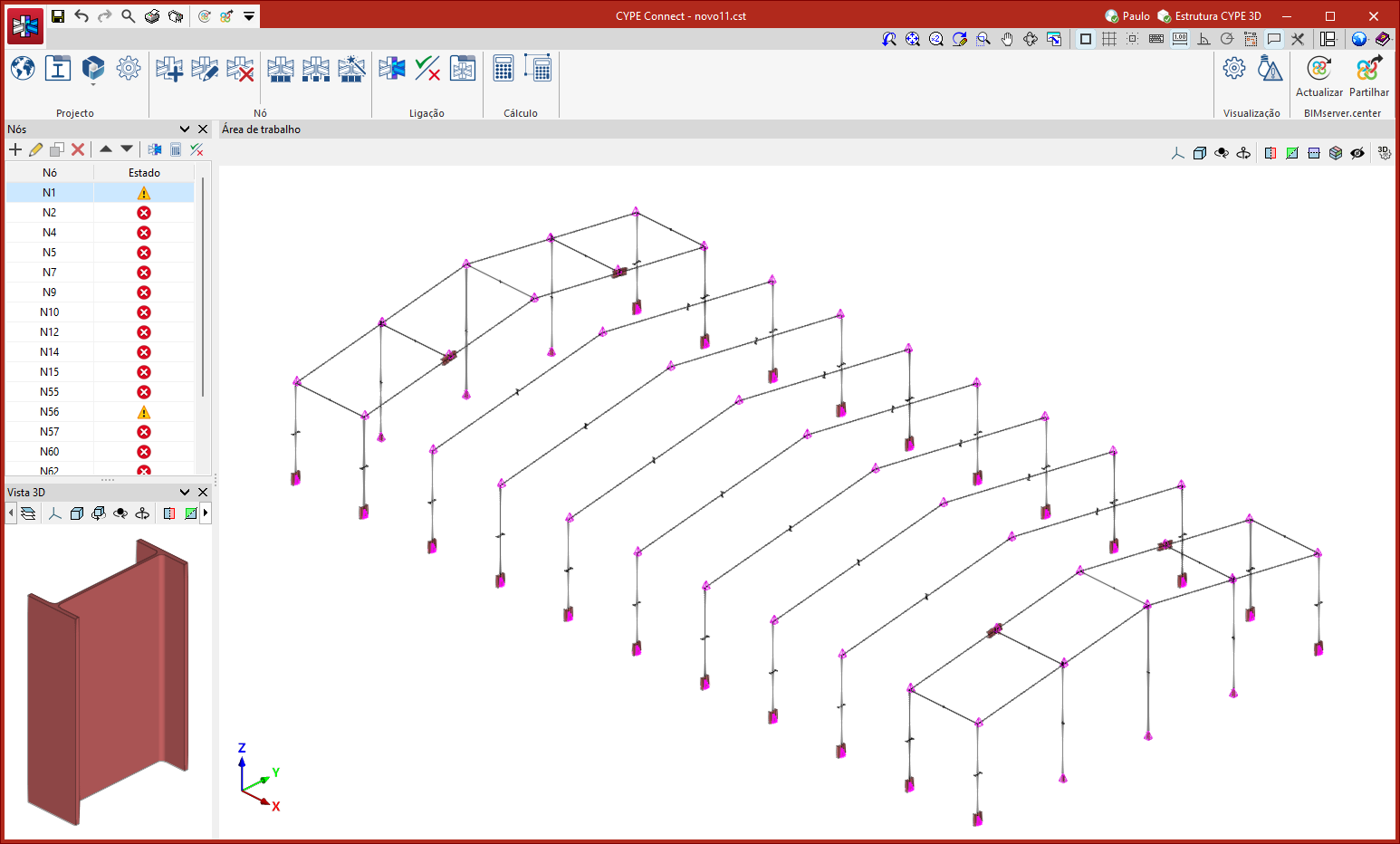 Uma vez terminado o processo de importação, os nós aparecerão na parte esquerda da interface do CYPE Connect:
