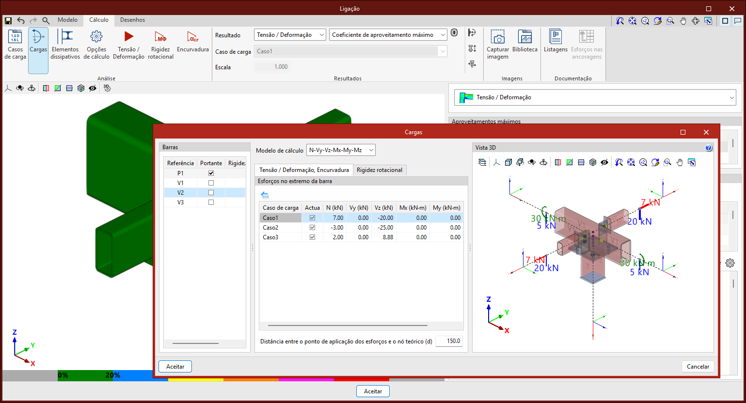 Os esforços calculados no CYPECAD ou CYPE 3D estarão disponíveis quando se realizar a modelação e o cálculo das ligações: