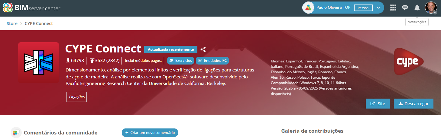 Depois, procede-se à descarga e instalação do CYPE Connect a partir do BIMserver.center Store.