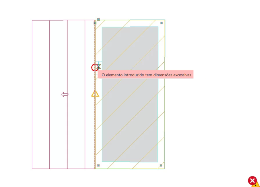 Se introduziu uma janela numa parede mas o programa exibe a seguinte mensagem de erro: "O elemento introduzido tem dimensões excessivas", o programa está a avisar de que falta introduzir uma parede de fecho de desnível onde está a tentar inserir a janela.