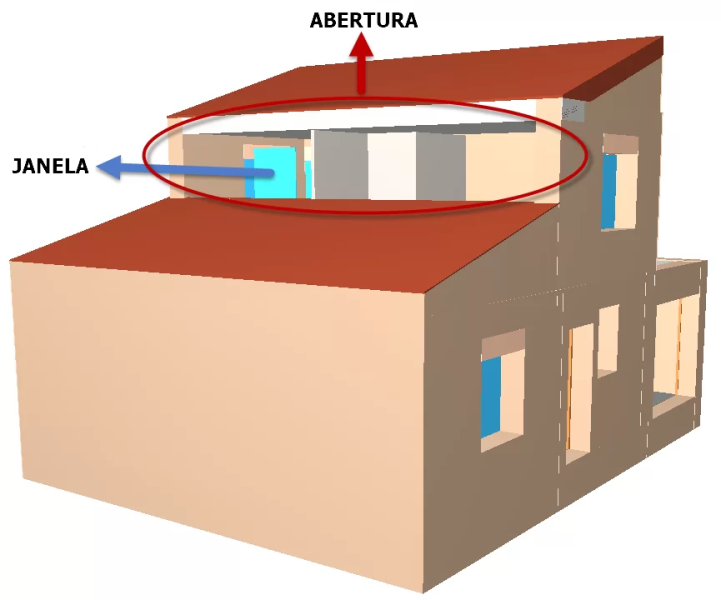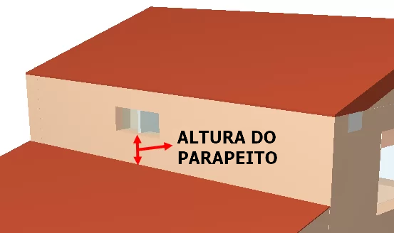 Nota: A altura ao parapeito da janela ou vão envidraçado de uma parede de fecho de desnívell é medida desde a parte inferior da parede que fecha o desnível (neste caso coincide com a linha onde termina a vertente da cobertura inferior).