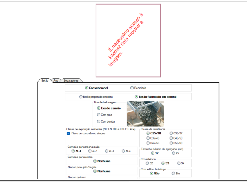 No Gerador de preços, o utilizador pode encontrar a seguinte mensagem nas zonas onde deveriam ser apresentadas as imagens: "É necessário acesso à internet para mostrar a imagem."