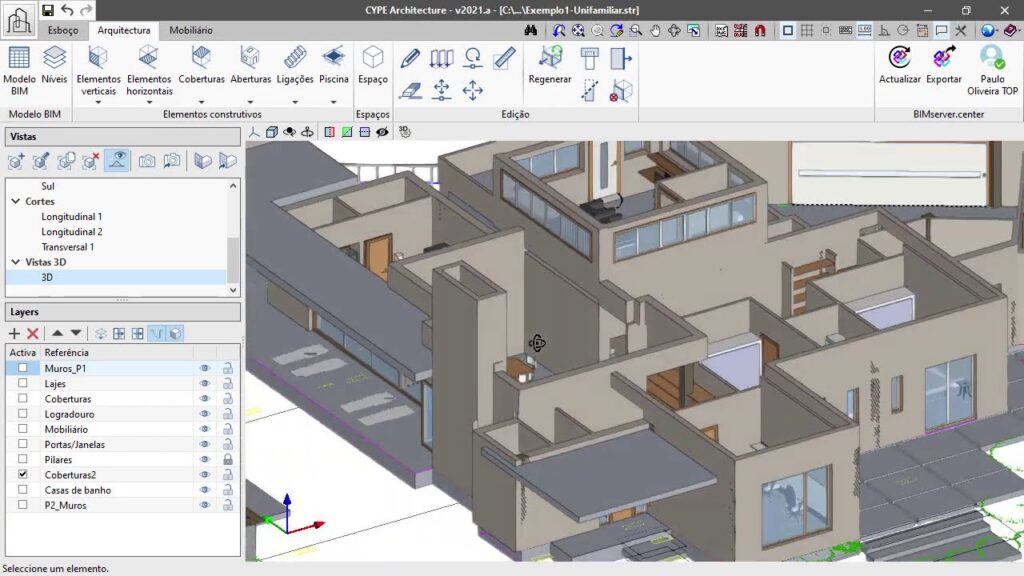 – Export the CYPE Architecture sketch to StruBIM CYPE 3D software as the structural wireframe.